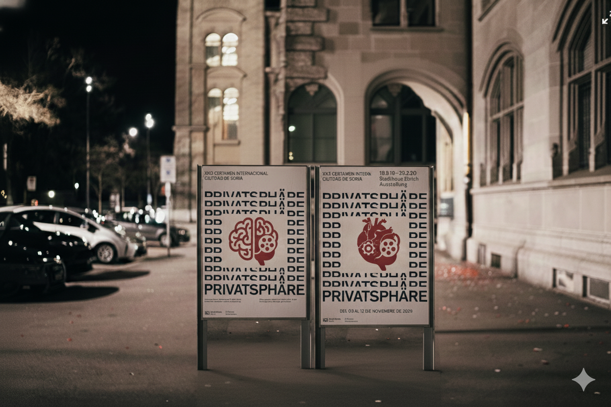 This project examines the tension between public space and digital monitoring. We created a striking visual language that reflects how individuals move through environments increasingly shaped by data collection and surveillance systems. Poster series exploring surveillance,and the shifting boundaries of privacy in modern cities.